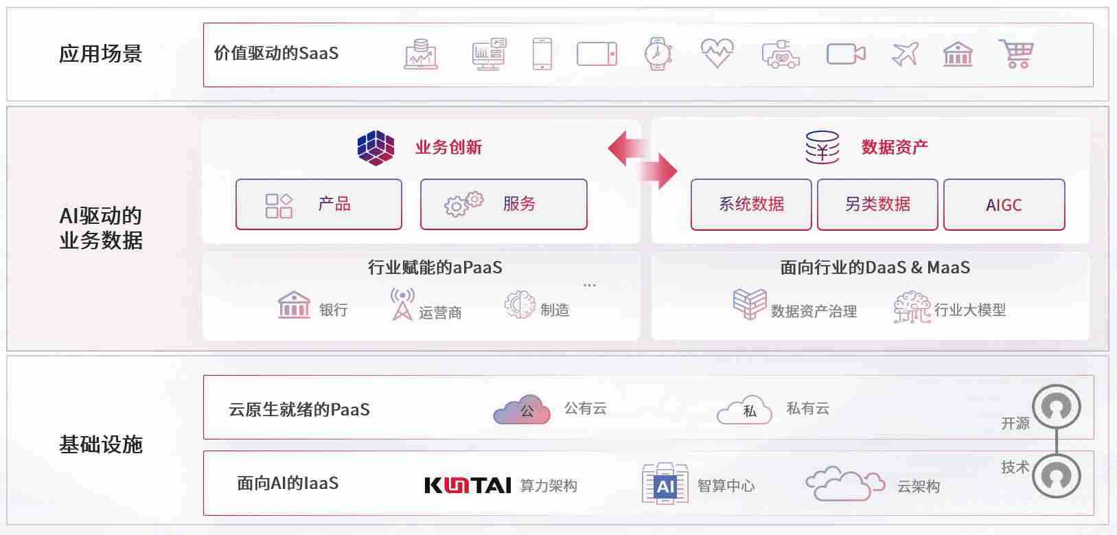 数字时代,,,,围绕企业数字化转型的关键要素,,,z6mg人生就是博数码开创性的提出数云融合战略和技术体系框架,,着力在云原生、、、、数字原生、、、AI原生和信创产业上架构产品和服务能力,,,,为处在不同数字化转型阶段的快消零售、、、汽车、、、金融、、、医疗、、、政企、、教育、、运营商等行业客户提供泛在的敏捷IT能力和融合的数据驱动能力,,,构建跨界融合创新的数字业务场景和新业务模式,,,,助力企业级客户建立面向未来的核心能力和竞争优势,,全面推动社会的数字化、、、智能化转型升级。。